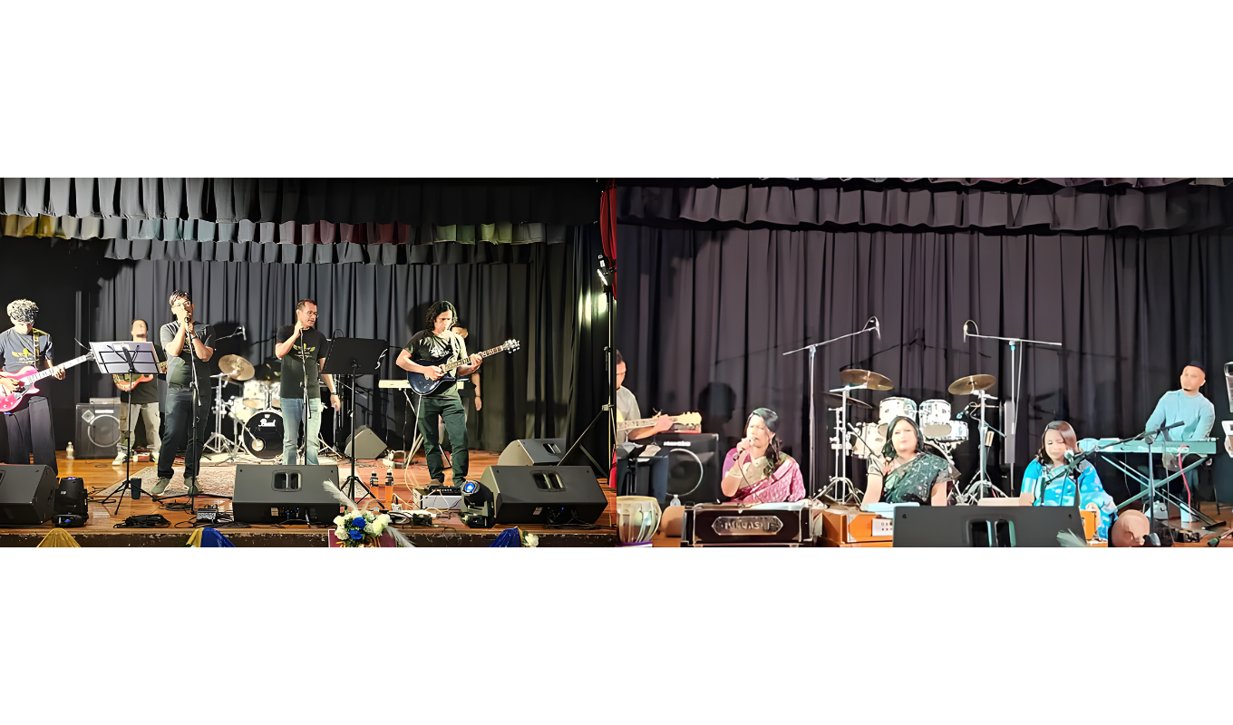 The first segment was hosted by Pushpita Chowdhury, with performances by Sudipa Ghosh, Preeti Roy, and Shyamali Debray, whose songs resonated deeply with the audience. The second segment featured the Splash Music Group, including Piyush Sarkar, Suman Roy, Logan Pal, and Shaon Sarkar. Their renditions of 1990s popular band music generated excitement, with many audience members singing along.