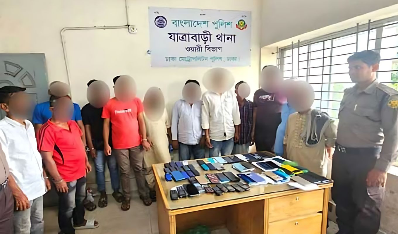 A coordinated police operation in the capital’s Jatrabari area has led to the arrest of 12 individuals allegedly involved in a sophisticated mobile phone theft and trafficking network, along with the recovery of 62 stolen handsets of various brands and models.